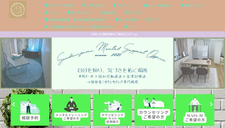 仙台泉メンタルサポートオフィスは、認知行動療法(考え方整理)を軸に相談を進められる点が特徴です。