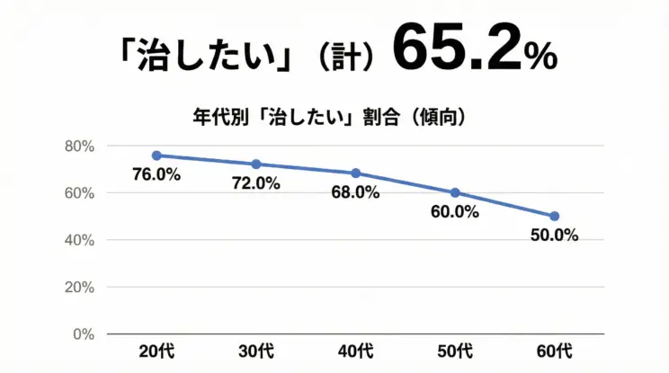 このように、若い世代ほど「治したい」と考える割合が高く、年齢を重ねるにつれ徐々に減少していく傾向があります。