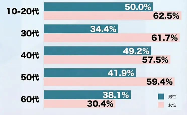 調査データを見ると、全体的に女性の方が体調不良を経験する割合が高い傾向があります。