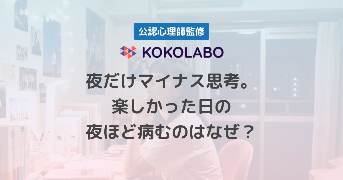 昔から私は夜になるとマイナス思考が止まらないんです。特に不思議なのが、昼間は楽しく過ごせた日ほど、夜になると一気に気持ちが沈むことが多いです。