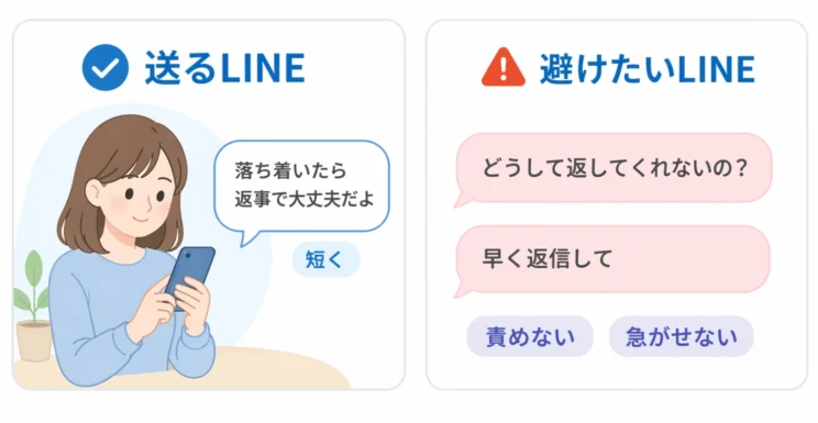 避けたいのは、返信の催促、責めるニュアンス、関係の未来を問う重いメッセージです。